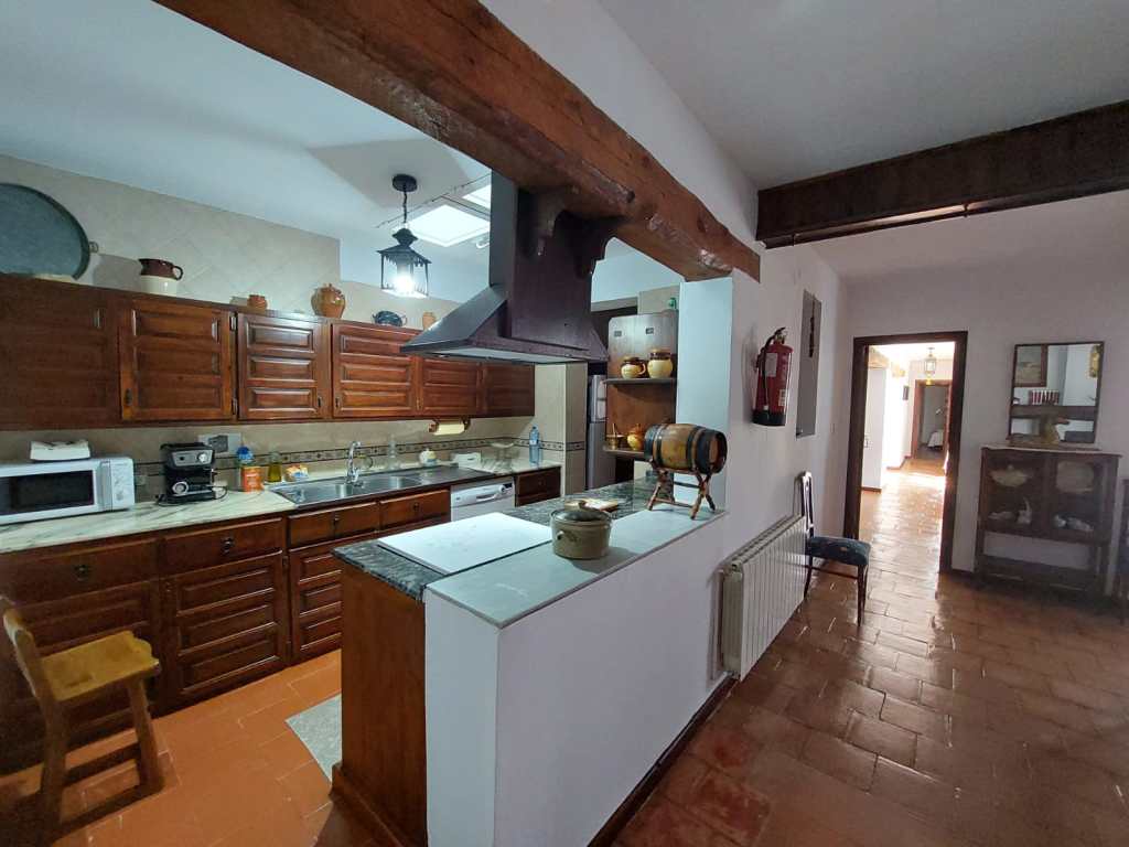 Encontramos una cocina totalmente equipada con barra americana, esta da al salón-comedor con salida al patio y finalmente encontramos otra especie de saloncito en el pasillo con acceso directo a la cocina.